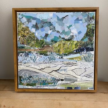 I begin a collage by examining my material, breaking it down and reassembling it into a story or mood I am trying to express. I tend to collage about nature but explore other themes as well. I like to use organic shapes, textures, and big colors as well as muted earth tones in my collages. Each image is chosen carefully. The layout of the collage can vary depending on what images I am working with. Often images connect seamlessly as if they are always meant to be together. I find collaging to be a meditative experience. My collaging practice gives me a feeling of calm in a topsy turvy world.